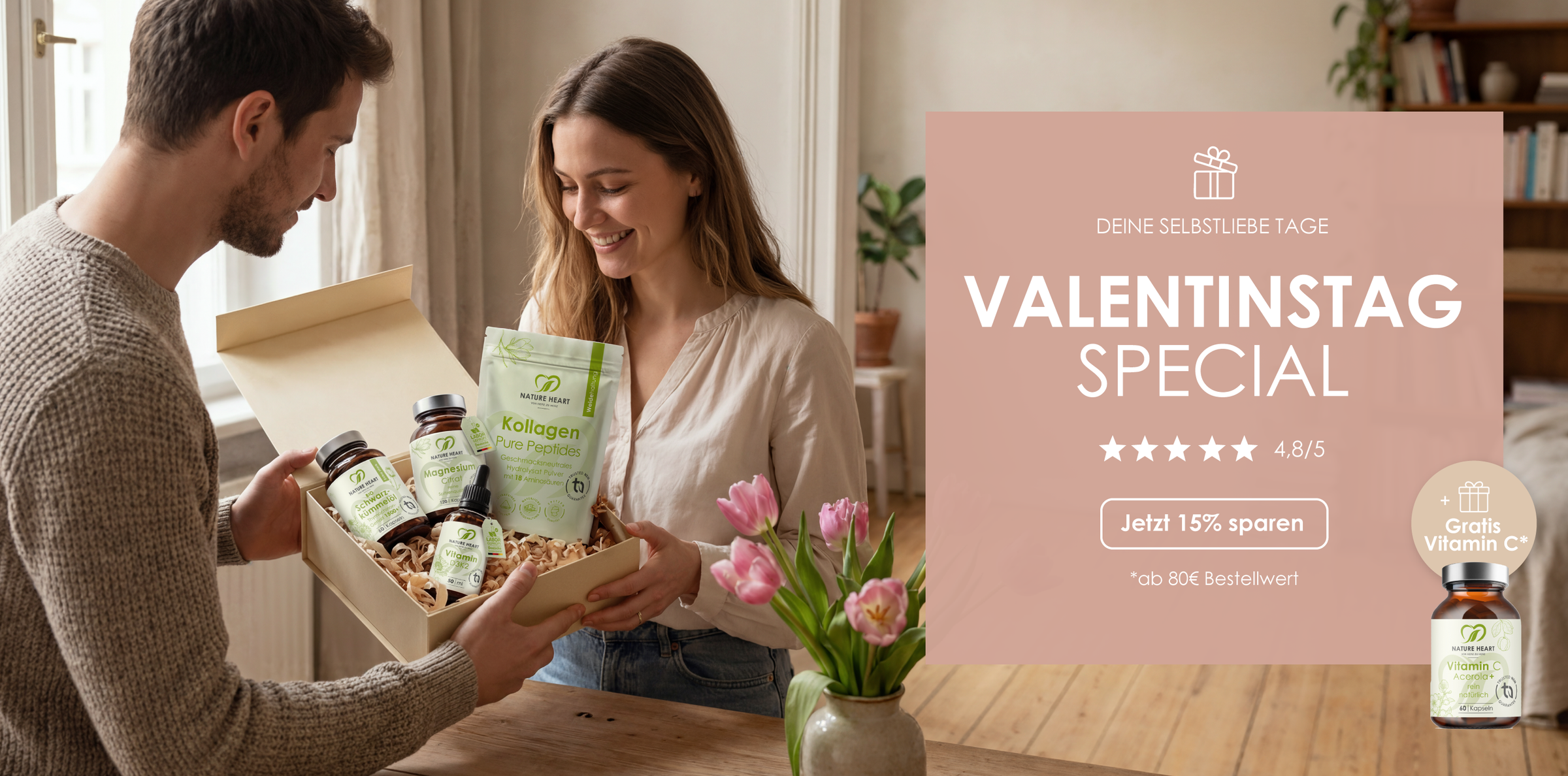 Sichere dir Nature Heart Produkte, die Herzen höher schlagen lassen mit bis zu 45% Rabatt in Verbindung mit dem Rabattcode LOVE15.