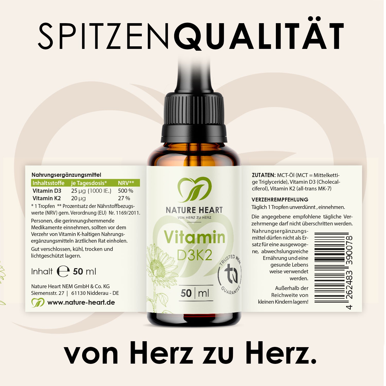 Nature Heart Nahrungsergänzungsmittel Vitamin D3+K2 Tropfen