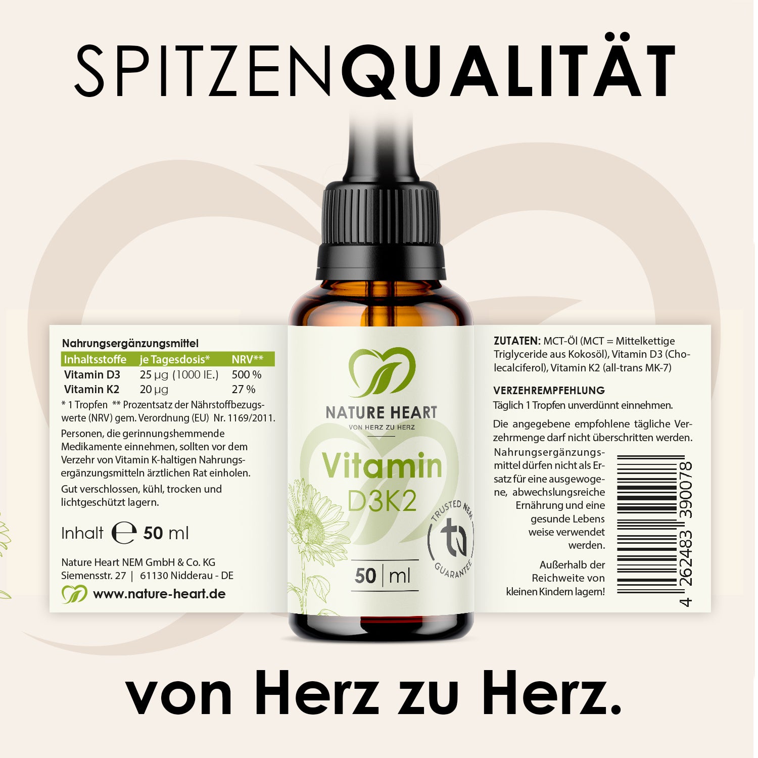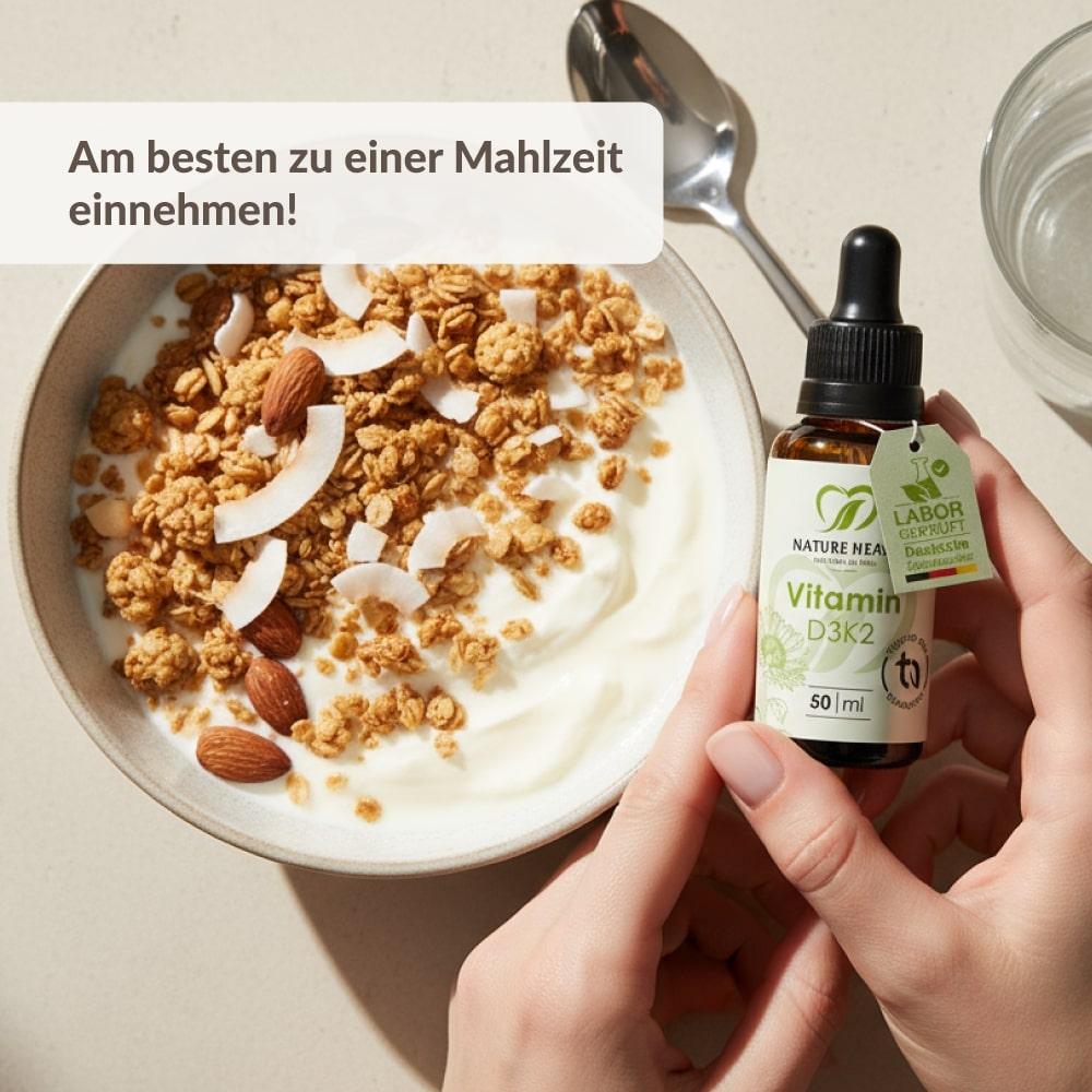 Mittelkettige Triglyceride Öl (MCT aus Kokosöl), Vitamin D3 (Cholecalciferol), Vitamin K2 (MK-7 Menaquinon)