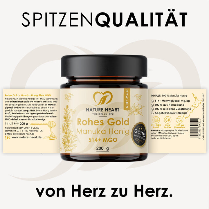 - ✔ Manuka Honig 514+ MGO (vereint Kraft, Reinheit und einzigartigen Geschmack)