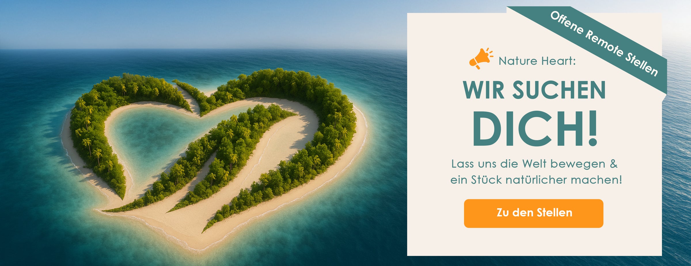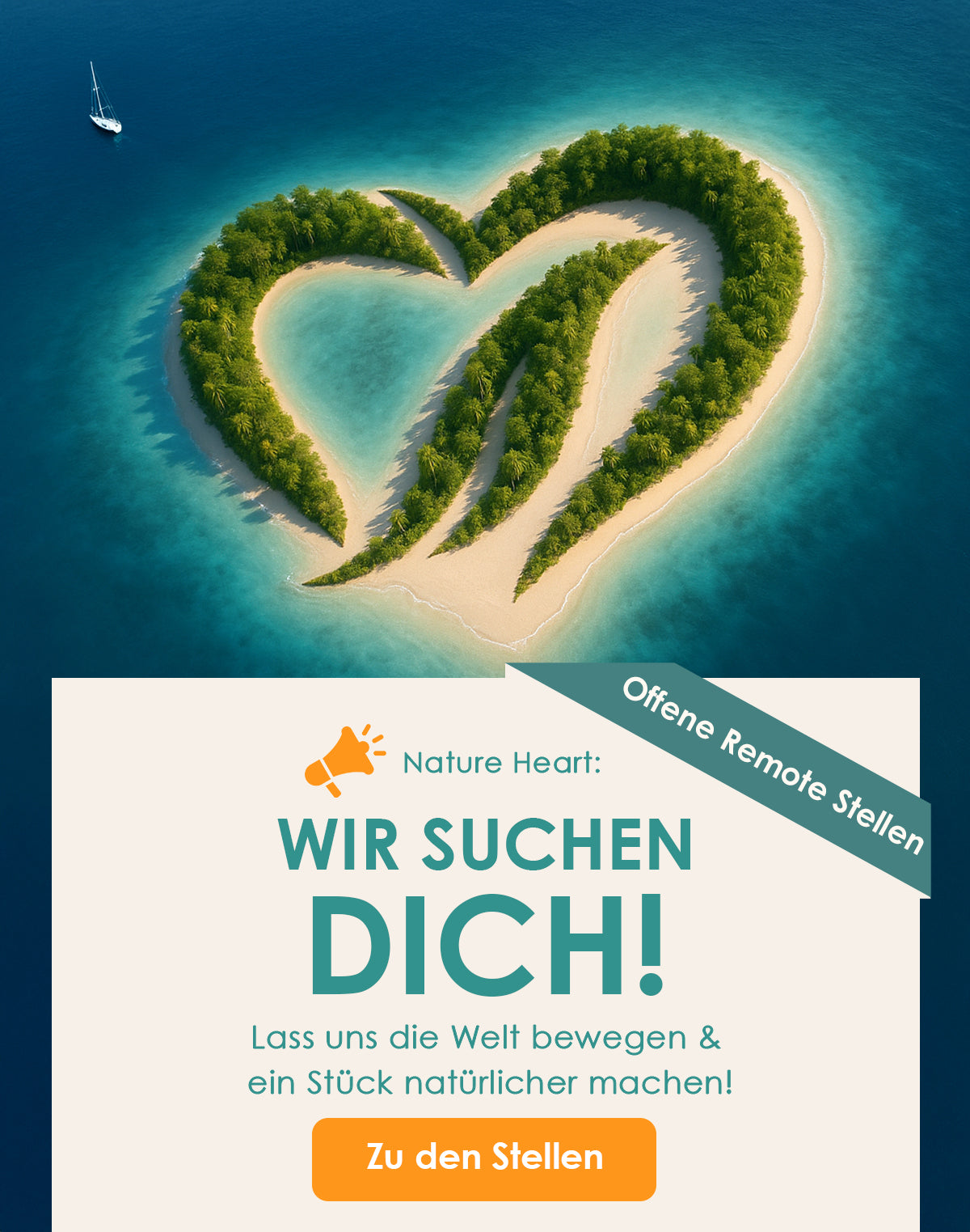 Gemeinsam für natürliche Gesundheit – von Herz zu Herz. Bei Nature Heart glauben wir an die Kraft der Natur und die Bedeutung authentischer, hochwertiger Produkte. Als wachsendes Unternehmen im Bereich der natürlichen Nahrungsergänzungsmittel suchen wir leidenschaftliche Talente, die unsere Vision teilen und mit uns zusammenarbeiten möchten. Entdecke spannende Karrieremöglichkeiten in einem dynamischen Team und gestalte mit uns die Zukunft der natürlichen Gesundheit.
