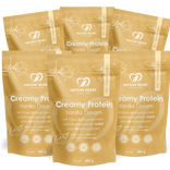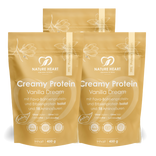 Unser Creamy Protein Vanilla Dream kombiniert pflanzliche Eiweißquellen mit mildem Vanillegeschmack – als Teil einer abwechslungsreichen und ausgewogenen Ernährung geeignet.