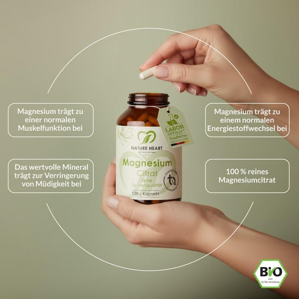Das Magnesium von Nature Heart ist vegan und komplett frei von Zusatzstoffen. Es passt gut in eine bewusste, ausgewogene Ernährung und kann die tägliche Magnesiumversorgung auf einfache Weise ergänzen beziehungsweise unterstützen.